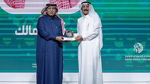 ثم كرم وزير الإعلام المكلف الدكتور ماجد بن عبد الله القصبي الفائز بجائزة شخصية العام خالد بن حمد المالك، كما تم في ختام الحفل تكريم الشركاء والرعاة الرسميين للمنتدى.