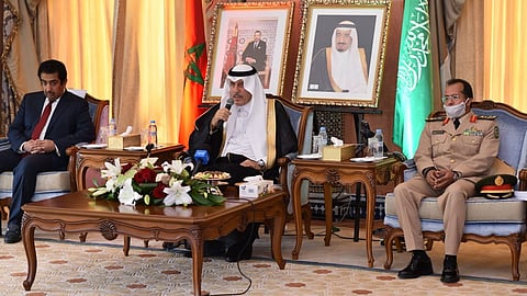 وحول العلاقات السعودية المغربية أشار في كلمته إلى ما يربط خادم الحرمين الشريفين الملك سلمان بن عبدالعزيز، وأخيه الملك محمد السادس -يحفظهما الله- من علاقات أخوية وطيدة، وما يربط البلدين وشعبيهما الشقيقين من علاقات تاريخية واستراتيجية قوية ومتجذرة في العمق في جميع المجالات، متمنيًا للبلدين الشقيقين مزيدًا من التقدم والازدهار والمنعة، وأن يديم عليهما نعمة الأمن والأمان والاستقرار في ظل القيادتين الحكيمتين للبلدين الشقيقين.