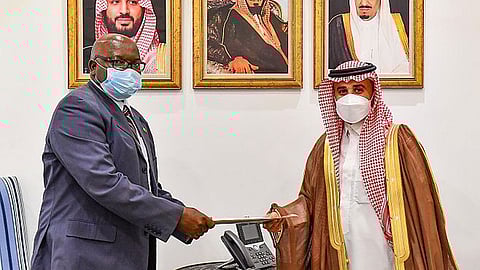 نيابة عن الأمير فيصل بن فرحان بن عبدالله وزير الخارجية، استقبل وكيل وزارة الخارجية المكلف لشؤون المراسم مشاري بن علي بن نحيت، في مقر الوزارة بالرياض اليوم، سفير جمهورية أوغندا المعيّن لدى المملكة إسحاق بيروما سيبوليمي.