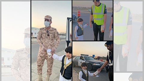 الطفل قرر توزيع عيدية العيد لزملاء والده، وهي مبادرة قدمها لجميع النقاط الأمنية في الحوية شمال الطائف.