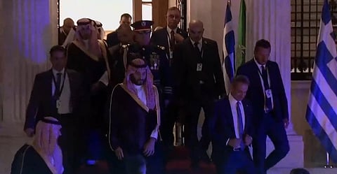 غادر ولي العهد صاحب السمو الملكي الأمير محمد بن سلمان، قصر الحكومة في أثينا بعد توقيع عدد من الاتفاقيات في عدة مجالات.