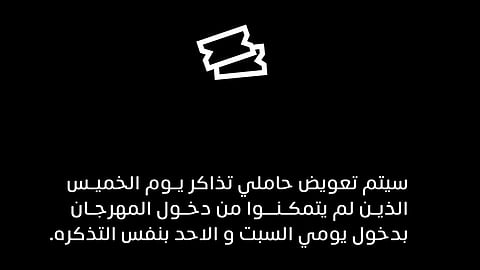أعلنت منصة مدل بيست "ساوندستورم ٢٠٢١" عبر حسابها في "تويتر"، تعويض حاملي التذاكر أمس الخميس، والذين لم يتمكنوا من دخول المهرجان.