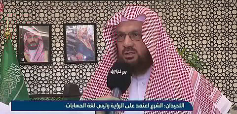 وقال «اللحيدان»، خلال لقائه مع فضائية «الإخبارية»، إن «كان للحساب مراجعة ونستفيد منه، لكن العبرة بما يتقرر بالرؤية الشرعية، وذلك بعد أن يصدر الإعلان من الديوان الملكي».