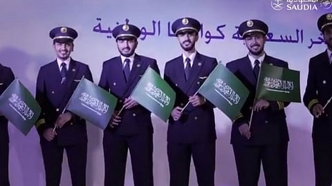 احتفلت الخطوط السعودية، بإكمال توطين وظيفة قائد مساعد الطائرة بنسبة 100%، ونشر الحساب الرسمي للمركز الإعلامي للخطوط السعودية عبر موقع «تويتر» مقطع فيديو يوضح فيه تفاصيل الاحتفال بتلك الخطوة الكبيرة واليوم التاريخي في مسيرة المؤسسة التي تمتد لأكثر من 75 عامًا.