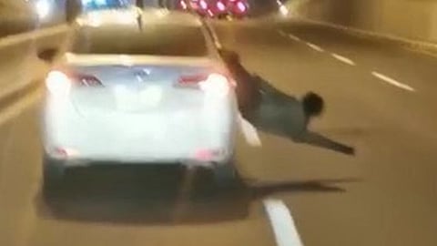 وقال المرور السعودي، عبر حسابه الرسمي على موقع التواصل الاجتماعي «تويتر»: «مرور منطقة عسير يضبط قائد المركبة ومرافقه الذي عرض نفسه وقائدي المركبات الأخرى للخطر، وسيتم إحالتهما للهيئة المرورية لتطبيق العقوبات المقررة في نظام المرور».