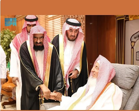 استقبل سماحة مفتي عام المملكة رئيس هيئة كبار العلماء والرئيس العام للبحوث العلمية والإفتاء الشيخ عبدالعزيز بن عبدالله آل الشيخ في مكتب سماحته بالرئاسة العامة عضو هيئة كبار العلماء ومفوض الإفتاء بمنطقة عسير الشيخ الدكتور جبريل البصيلي ومدير عام فرع الرئاسة العامة للبحوث العلمية والإفتاء بمنطقة عسير سعيد القحطاني الذي سلّم لسماحته التقرير الختامي للفرع لعام 2023 .