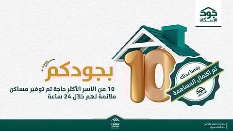حققت منصة «جود الإسكان»، التي تشرف عليها مؤسسة الإسكان التنموي الأهلية أعلى معدل تبرع لها، مما أسهم في توفير مساكن لنحو 10 أسر محتاجة للسكن خلال يوم واحد ضمن مبادرة (#كليومبيت) التي أطلقتها المنصة، وهو أعلى رقم تحققه المنصة من الأفراد، كما شمل الدعم أيضاً سداد الإيجارات لنحو 52 أسرة.
