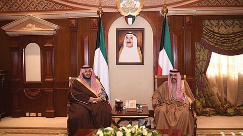 استقبل ولي عهد دولة الكويت الشيخ نواف الأحمد الجابر الصباح، في قصر «بيان»، الأمير تركي بن محمد بن فهد، وزير الدولة وعضو مجلس الوزراء والوفد المرافق، اليوم الاثنين، ونقل الأمير تركي، لولي عهد دولة الكويت تحيات وتقدير أخيه الأمير محمد بن سلمان، ولي العهد نائب رئيس مجلس الوزراء وزير الدفاع، وحمّل الشيخ نواف تحياته وتقديره لأخيه خادم الحرمين الشريفين الملك سلمان بن عبدالعزيز، وولي عهده الأمين وتمنياته لهما بموفور الصحة وتمام العافية.