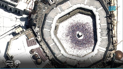 أظهرت صوراً فضائية من ارتفاع ٦٢٠ كيلو متر حجاج بيت الله أثناء طواف الإفاضة بالمسجد الحرام.