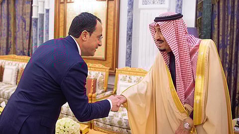 ونقل الوزير في بداية الاستقبال لخادم الحرمين الشريفين، تحيات الرئيس «نيكوس أناستاسيادس» رئيس جمهورية قبرص، فيما حمّله الملك تحياته إليه.