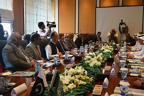 عُقدت في العاصمة الباكستانية إسلام أباد، أمس، جلسة مباحثات بين وفدين رفيعَي المستوى من المملكة العربية السعودية وجمهورية باكستان الإسلامية؛ وذلك لبحث سبل تعزيز وتطوير التعاون الثنائي في مختلف المجالات، لا سيما في مجالات التكرير والتعدين والطاقة المتجددة.