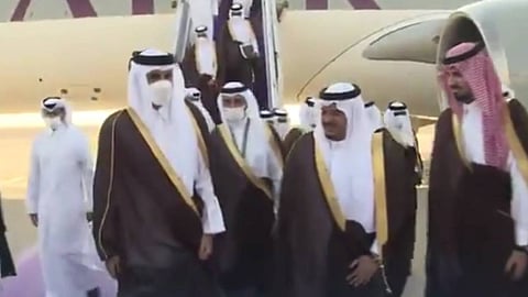 وكان في استقباله بمطار الملك خالد الدولي الأمير محمد بن عبدالرحمن بن عبدالعزيز أمير منطقة الرياض بالنيابة، والأمير فيصل بن عبدالعزيز بن عيّاف أمين منطقة الرياض، ومدير شرطة المنطقة اللواء فهد بن زيد المطيري والقائم بالأعمال بالإنابة في سفارة دولة قطر في الرياض حسن بن منصور الخاطر، ومندوب عن المراسم الملكية.