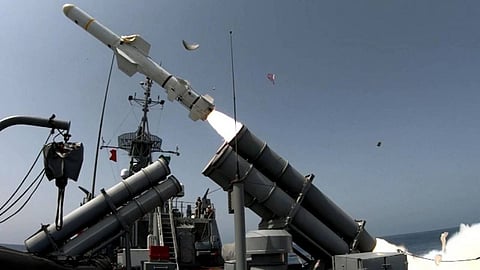 #القوات_البحرية_الملكية_السعودية تنفذ رماية بالصواريخ على الأهداف البحرية في منطقة عمليات تمرين مناورات #نسيم_البحر_13. pic.twitter.com/S8bECu1Q6t