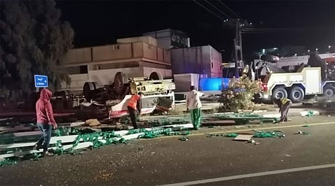 وأضاف الزهراني أن غرفة العمليات تلقت بلاغًا على الرقم الموحد 997 في تمام الساعة 1:06 بعد منتصف الليل بوقوع حادث انقلاب معدة ثقيلة بوادي فيق طريق الباحة بالجرشي.