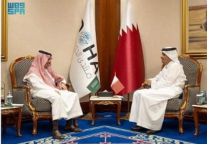 التقى الأمير فيصل بن فرحان بن عبدالله وزير الخارجية، اليوم، الشيخ محمد بن عبدالرحمن بن جاسم آل ثاني، رئيس مجلس الوزراء وزير خارجية دولة قطر، على هامش منتدى الدوحة 2024 في نسخته الـ 22، في العاصمة القطرية الدوحة.