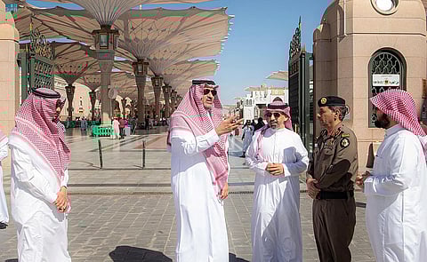 تفقد الأمير فيصل بن سلمان بن عبدالعزيز، أمير منطقة المدينة المنورة، استعدادات مختلف الجهات المعنية بخدمة الزائرين للمسجد النبوي الشريف، وذلك بالتزامن مع قرّب حلول شهر رمضان المبارك، بحضور أمين المنطقة المهندس فهد البليهشي، ومدير شرطة المنطقة اللواء عبدالرحمن المشحن، ووكيل الرئيس العام للحوكمة والشؤون القانونية والتطويرية برئاسة شؤون الحرمين الشريفين الدكتور نبيل اللحيدان، ووكيل الإمارة المساعد للشؤون التنموية المهندس ماجد الحربي.