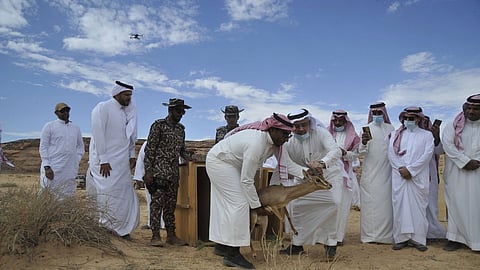 أطلق الرئيس التنفيذي للمركز الوطني لتنمية الحياة الفطرية الدكتور محمد قربان والرئيس التنفيذي للهيئة الملكية لمحافظة العلا المهندس عمرو المدني اليوم، أكبر عملية إطلاق للأحياء الفطرية المهددة بالانقراض من حيث عدد الأنواع في محمية شرعان في العلا.