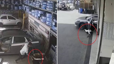 وما إن انتبه صاحبها حتى ركض وصعد بجانب السارق الذي رجع بالسيارة إلى الخلف، مما أدى إلى سقوط المالك واصطدامه بعامود، ليتجه مجددا نحو المركبة. كما أظهر فيديو من كاميرا مثبتة داخل الموقع، السيارة تصطدم بنهاية حائط المحل وتتوقف فجأة، بعد سقوط السارق منها دون حراك.