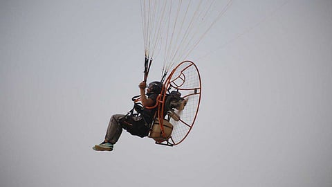 وقال غازي: "أبرز المخاطر التي تقابل الأشخاص الذين يمارسون هواية طيران شراعي هو توقف المحرك أثناء الطيران ، وفي هذه الحالة البارشوتات مؤهلة في إنزال الطائرة والأشخاص التي بداخلها بكل أمان".