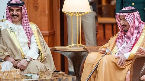 وقد بادل خادم الحرمين الشريفين، ملك البحرين التهنئة، داعيًا الله تعالى أن يعيد هذه المناسبة السعيدة على البلدين والشعبين الشقيقين بالخير والنماء.