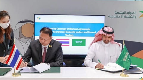 وناقش الطرفان أبرز الموضوعات ذات الاهتمام المشترك بين الوزارتين، كما تضمّن اللقاء توقيع اتفاقيتين في مجال توظيف العمالة العامة والعمالة المنزلية، حيث تهدف هذه الاتفاقيات إلى وضع إطار قانوني لجميع الإجراءات اللازمة للتوظيف الفعّال للعمالة التايلندية في المملكة، وحماية حقوق العامل وصاحب العمل وتنظيم العلاقة التعاقدية بينهما، ووضع آليات المتابعة والتنفيذ المشترك لأحكام تلك الاتفاقيتين.