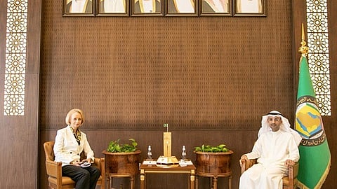 استقبل الدكتور نايف فلاح مبارك الحجرف، الأمين العام لمجلس التعاون لدول الخليج العربية، مارتينا سترونغ، القائم بأعمال السفارة الأمريكية لدى المملكة، اليوم الخميس، بمقر الأمانة العامة بالرياض.
