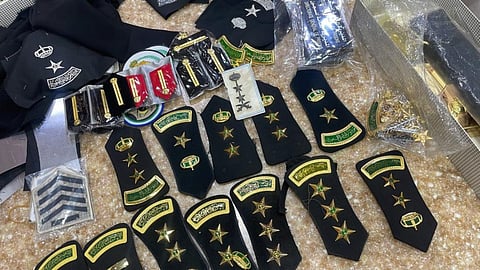 ضبطت اللجنة الأمنية لمراقبة محلات بيع وخياطة الملابس العسكرية بإمارة منطقة الرياض، مؤخرًا، مقيمًا من الجنسية البنجلاديشية، بحوزته رتبًا وشعارات أمنية يحملها في مركبته الخاصة، وتم مصادرة المضبوطات لمخالفته لأنظمة وتعليمات وزارة الداخلية، وإحالته ومركبته للجهات ذات الاختصاص.