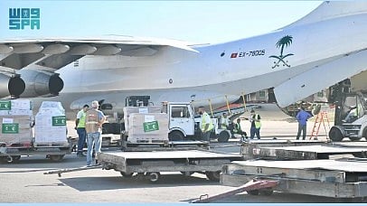 وتحمل على متنها المساعدات الإغاثية التي تشتمل على المواد الغذائية والإيوائية والطبية؛ وذلك إنفاذًا لتوجيهات خادم الحرمين الشريفين الملك سلمان بن عبدالعزيز آل سعود، وصاحب السمو الملكي الأمير محمد بن سلمان بن عبدالعزيز آل سعود ولي العهد رئيس مجلس الوزراء - حفظهما الله -