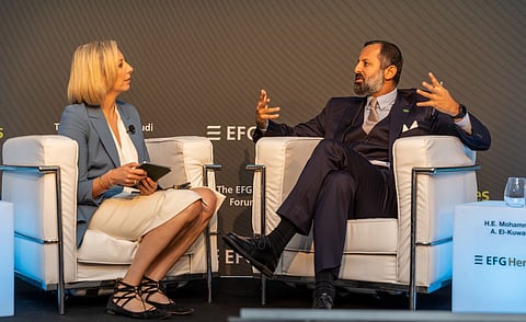انطلقت اليوم أعمال المؤتمر الاستثماري «EFG Hermes Saudi Forum in London» في لندن تحت عنوان "البحث عن النمو المستدام". وسيشهد المؤتمر، الذي ينعقد على مدار يومين، بالتعاون مع تداول السعودية، بحضور375 ضيفاً من بينهم ممثلون من أكثر من 50 شركة سعودية من مختلف القطاعات الحيوية، وهيئة السوق المالية السعودية، وصندوق الاستثمارات العامة، إلى جانب أكثر من 200 مستثمر من أكثر من 120 مؤسسة مالية الدولية ومجموعة من أبرز مديري الصناديق حول العالم.