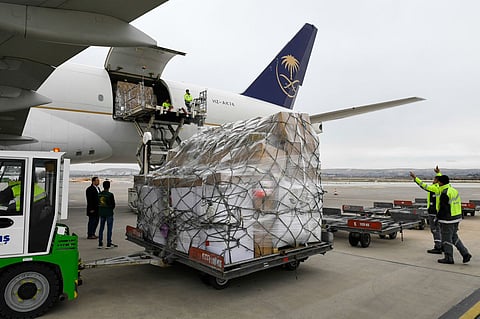 ويأتي ذلك ضمن الجسر الجوي الإغاثي السعودي الذي يسيّره مركز الملك سلمان للإغاثة والأعمال الإنسانية لمساعدة متضرري الزلزال في سوريا وتركيا، إنفاذاً لتوجيهات خادم الحرمين الشريفين الملك سلمان بن عبدالعزيز آل سعود وصاحب السمو الملكي الأمير محمد بن سلمان بن عبدالعزيز ولي العهد رئيس مجلس الوزراء -حفظهما الله- وتجسيداً للدور الإنساني النبيل الذي تقوم به المملكة العربية السعودية.