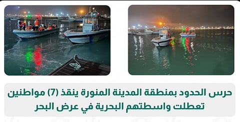 أعلنت فرق البحث والإنقاذ بحرس الحدود في قطاع ينبع بمنطقة المدينة المنورة عن إنقاذ (7) مواطنين وتم تقديم المساعدة لهم، إثر تعطل واسطتهم البحرية في عرض البحر.