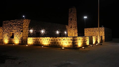 ويعد المسجد من أقدم المساجد التراثية بمنطقة الجوف، وبني عام 1375هـ؛ حيث أمر ببنائه الأمير عبدالعزيز السديري – رحمه الله - أمير منطقة القريات والجوف آنذاك أثناء زيارته مركز الحديثة عام 1373هـ، وترجع الأهمية التاريخية له إلى أنه يعد من أقدم مساجد مركز الحديثة الحدودي، وبوابة الدخول الرئيسة للحجاج القادمين من الشام وتركيا وروسيا والشيشان، بالإضافة إلى أنه المسجد الوحيد الذي تقام فيه صلاة الجمعة، ويأتي الناس إليه من المناطق المجاورة للصلاة فيه.