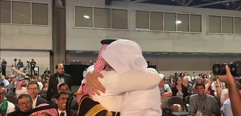 وقَبّل الطالب "الفليح" في مشهد عفوي رأس مشرفيه أكثر من مرة، عقب إعلان النتيجة مباشرة.