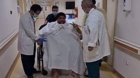 وظهر الشراري خلال مقطع الفيديو يسير على قدميه وسط تهليل من الأطباء المتواجدون حوله.