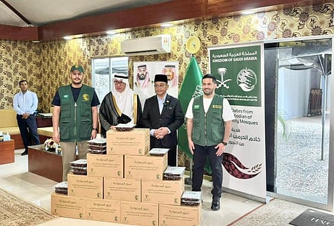 سلّم مركز الملك سلمان للإغاثة والأعمال الإنسانية، اليوم، هدية المملكة العربية السعودية لمملكة ماليزيا البالغة 25 طنًا من التمور.