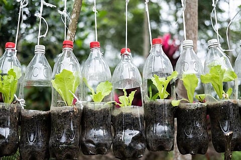 كشف المزارع «علي آل صلاح» عن طريقة إبداعية لإعادة تدوير القوارير واستخدامها في الزراعة المائية، في القطيف.