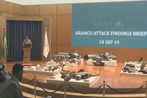 عرضت وزارة الدفاع أدلة على تورُّط إيران في استهداف معملي أرامكو في بقيق وخريص، يوم السبت الماضي، بينها صور لبقايا الصواريخ التي استهدفت المعملين.