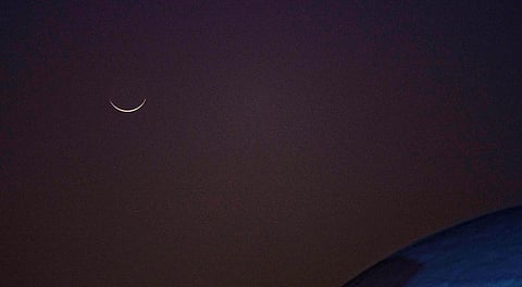 رصدت عدسة العربية، هلال القمر الصغير لشهر شوال في سماء المملكة، وذلك بعد غروب الشمس اليوم، والانتقال نحو بداية الليل بالأفق الغربي.