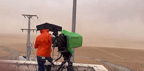 شهدت مدينة "تمير" قبل لحظات عاصفة ترابية من ترائي هلال شهر رمضان.