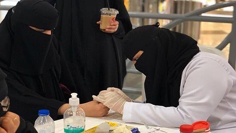 وبينت الدكتورة نجلاء الدعيجي، أن الحملة شارك فيها 10 طالبات، قدمن خدمات متعددة للزوار مثل قياس ضغط الدم والسكري، والتوعية بأهم أمراض الدم الوراثية مثل الثلاسيميا، الهيموفيليا، وفقر الدم المنجلي، فضلًا عن حص مستوى الهيموجلوبين وتقديم استشارات طبية.