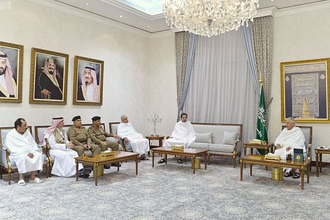 وخلال اللقاء، الذي حضره نائب أمير منطقة مكة المكرمة، الأمير بدر بن سلطان بن عبدالعزيز، في مقر الإمارة بمنى اليوم، استمع مستشار خادم الحرمين الشريفين إلى إيجاز عن سير الخطط الأمنية في الحج، والأعمال التي ينفذها رجال الأمن لخدمة ضيوف الرحمن.