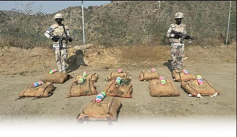 أحبطت الدوريات البرية لحرس الحدود في قطاع العارضة بمنطقة جازان تهريب (220) كيلوجرامًا من نبات القات المخدر.
