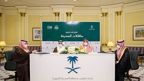 ووقع على عقد مشروع النقل العام بالحافلات اليوم، المهندس فهد بن محمد البليهشي أمين أمانة المدينة المنورة، والمهندس خالد بن عبدالله الحقيل الرئيس التنفيذي لشركة «سابتكو»، في حضور معالي رئيس الهيئة العامة للنقل الدكتور رميح بن محمد الرميح.