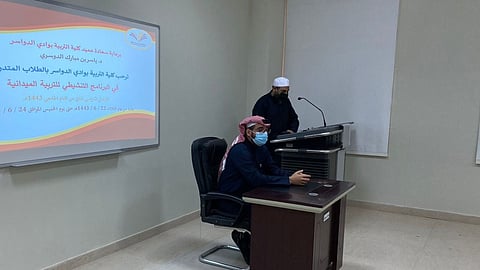 اختتمت كلية التربية في محافظة وادي الدواسر، اليوم برنامج تهيئة طلاب التدريب الميداني للفصل الجامعي الحالي، والذي بدأ يوم الثلاثاء الماضي على مسرح الكلية بالمدينة الجامعية في المحافظة، وعبر (الاتصال المرئي).
