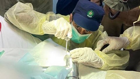 ونشر الدفاع المدني، صورًا توثق لحظة تحرير فرق الإنقاذ ليد الطفلة، والتي تمت بأحد مستشفيات الرياض.