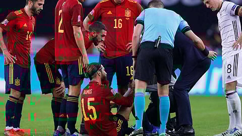 وخرج راموس من أرض ملعب لا كارتوخا في الدقيقة 43 من الشوط الأول من مباراة اللاروخا أمام الضيف ألمانيا، في المباراة التي انتهت بفوز رجال المدرب لويس إنريكي بسداسية مذلة، في ختام دور المجموعات بدوري الأمم الأوروبية.