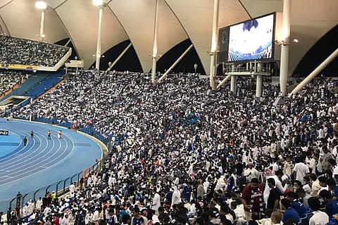 اكتظّ ملعب الملك فهد الدولي في الرياض، بجماهير النصر والهلال التي حرصت على الحضور في وقت مبكر، يوم الجمعة، استعدادًا لديربي الرياض.
