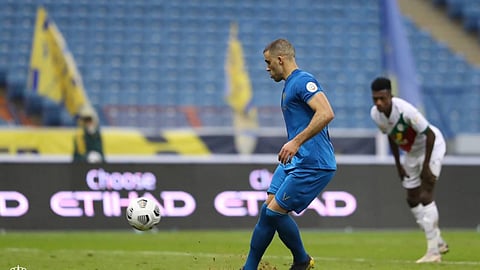 وأهدر حمدالله ركلة جزاء ثانية على التوالي أمام الاتفاق، بعد الاستراحة، سددها بغرابة شديدة فوق المرمى عندما كانت النتيجة تُشير إلى تقدم أصحاب الأرض، قبل أن ينتفض النصر ويدرك التعادل في الأنفاس الأخيرة؛ حيث وقع المغربي على الهدف القاتل من ركلة جزاء أيضًا، نفذها حمدالله بنجاح هذه المرة، في الدقيقة السابعة من الوقت المبدد.