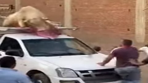 تداول رواد مواقع التواصل الاجتماعي فيديو يوثق لحظة هروب عجل من على متن شاحنة في مصر، ما تسبَّب في حالة من الفوضى والهلع بين الجزارين والمارة.