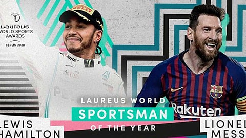 تقاسم نجم كرة القدم الأرجنتيني ليونيل ميسي، والبريطاني لويس هاميلتون بطل العالم لسباقات سيارات فورمولا -1 جائزة لوريوس الرياضية العالمية لأفضل رياضي للعام المنصرم.